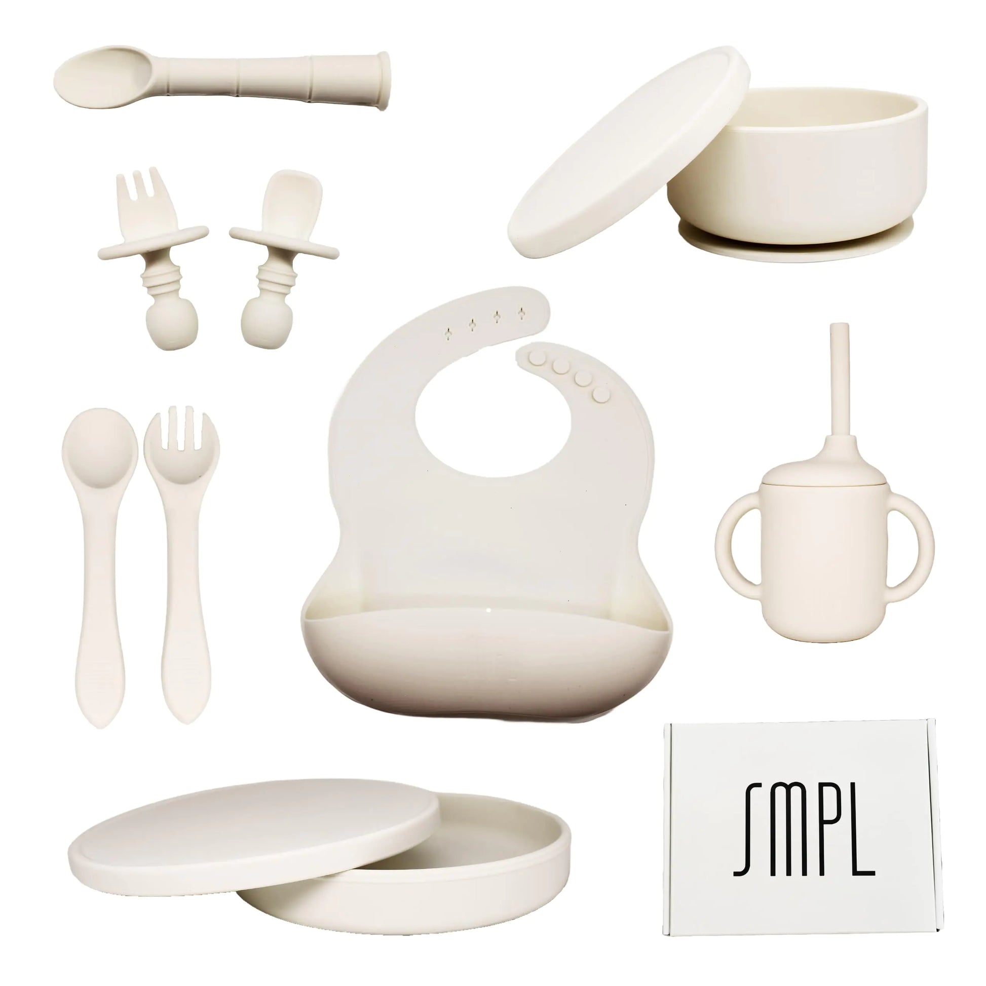 [100% food-grade silicone: BPA free phthalate-free lead-free and odorless Stain resistant dishwasher safe microwave safe freezer safe boiling water sterilization safe and can withstand temperatures up to 220 degrees Celsius Simple and practical designs: no sharp or hard edges and are easy to store Cover on plate and bowl for storage meal prep and travel Strong suction: under plate and bowl to help prevent spills Squeezable traw cup with straw stopper to make it easier to teach babies how to drink from straw]